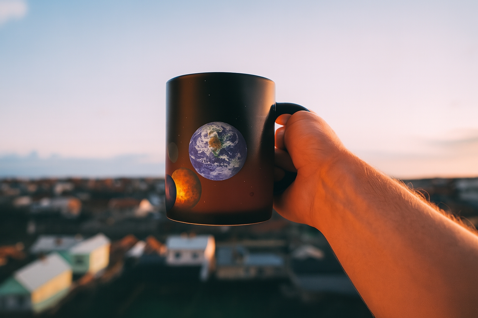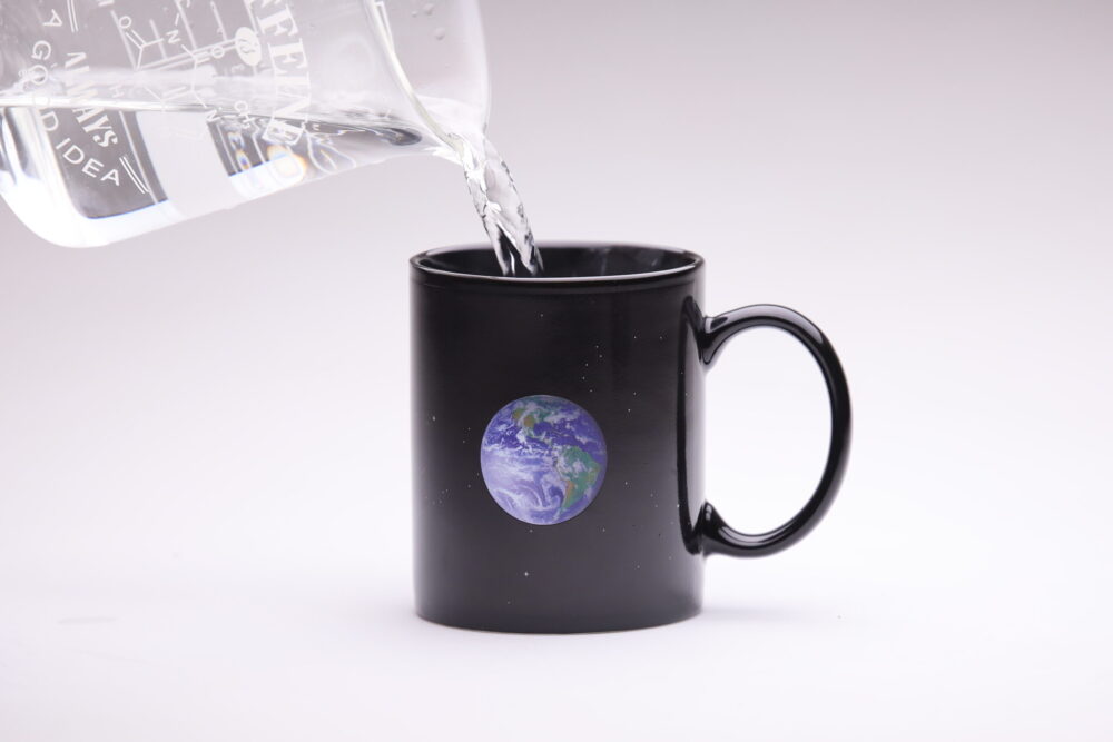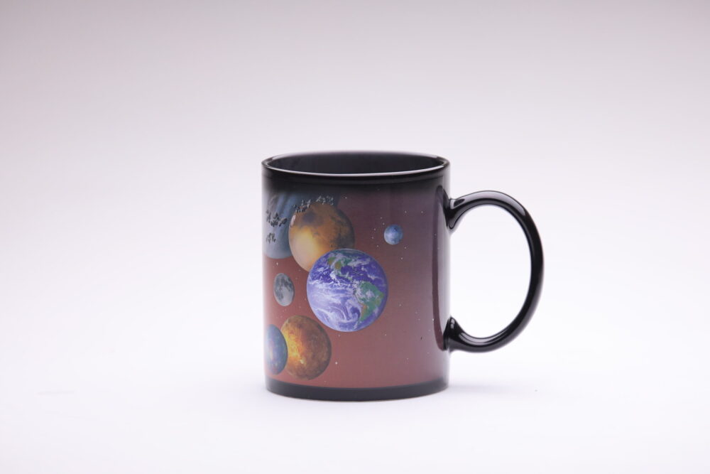 The moment you pour in a hot drink, the planets “pop” into view as if clocking in for work.