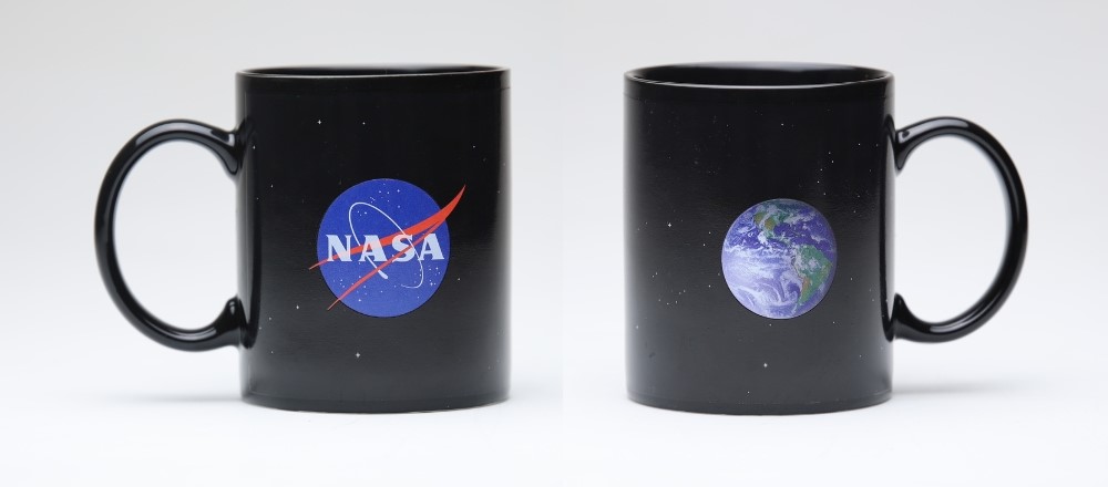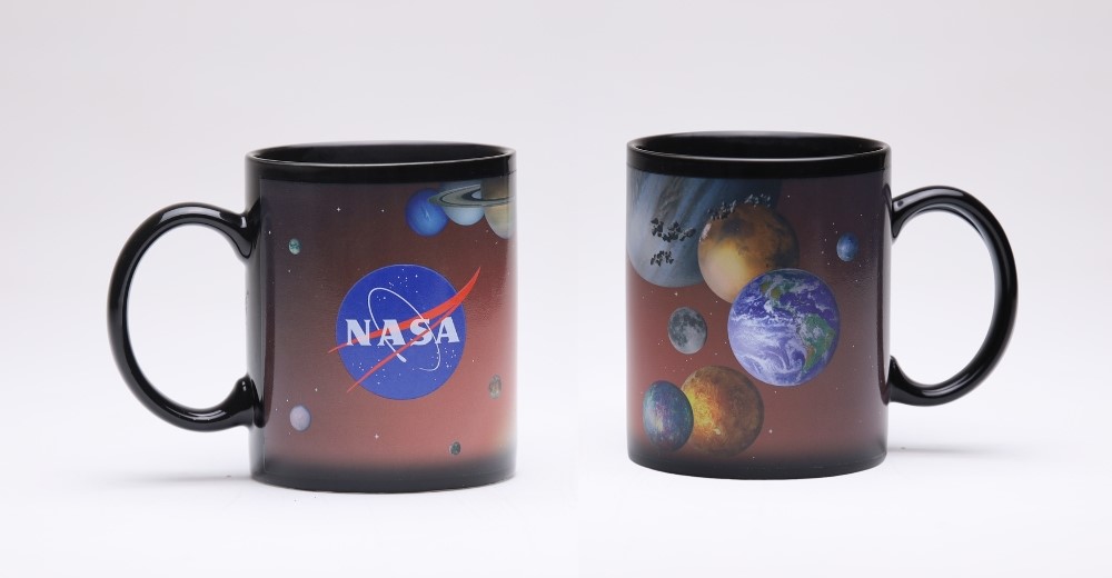 Using a special thermo-sensitive coating, the mug looks like a subtle, mysterious cosmic background at room temperature.